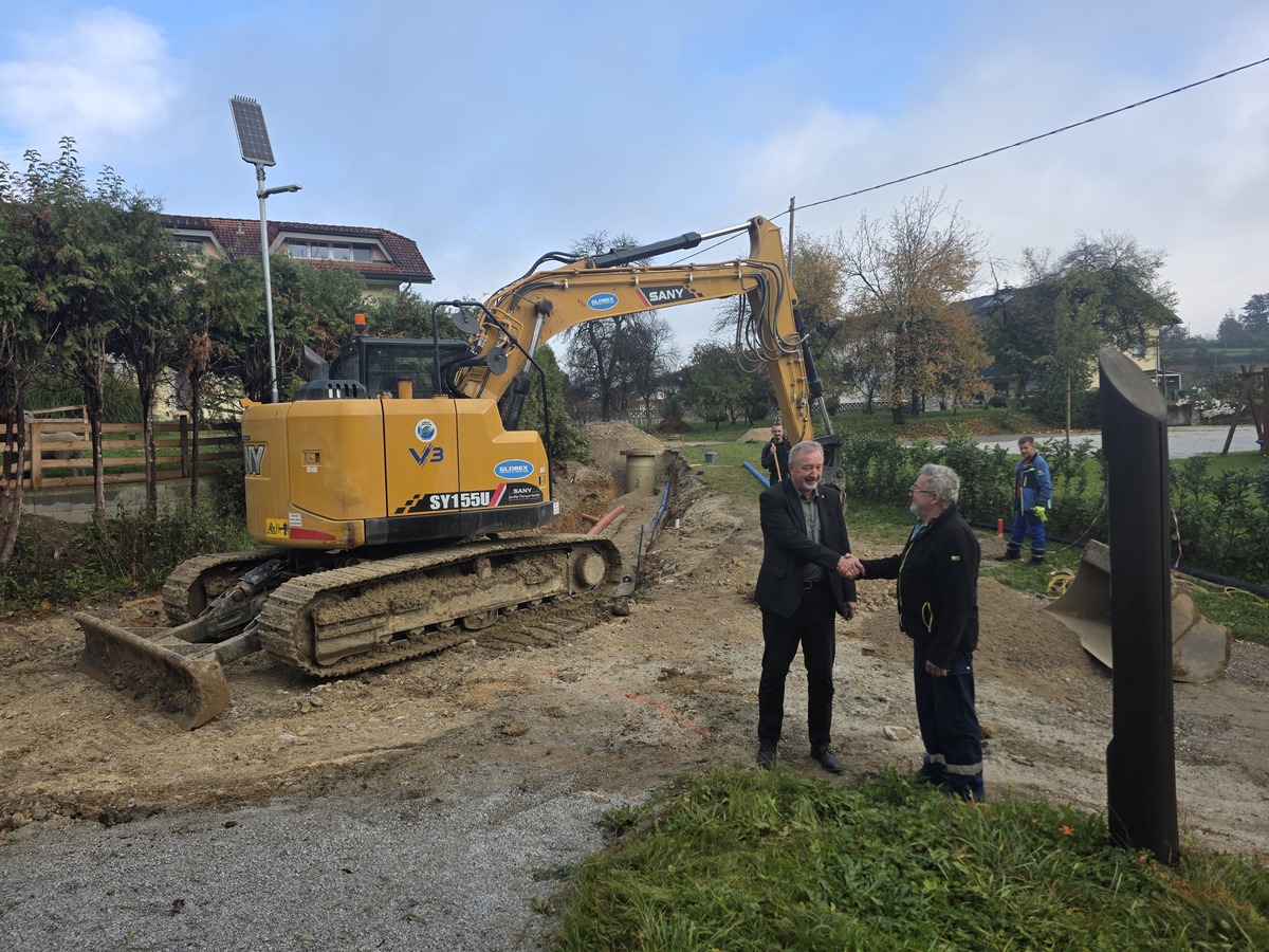 Župan Občine Moravče dr. Milan Balažic je danes, 22. oktobra 2025, obiskal gradbišče kanalizacijskega omrežja v Češnjicah pri Moravčah. Dela so se krepko prevesila v drugo polovico in na nekaterih odsekih so po izgradnji kanalizacije že asfaltirane ceste. Z vodjo gradbenega odbora vasi Češnjice Cirilom Veselom sta posebno pozornost namenila izpolnjevanju dogovorov, ki so bili sklenjeni na sestanku župana z gradbenim odborom. Gre predvsem za prometno ureditev ceste skozi kraj in sredstva, s katerimi se bo promet umirjal.