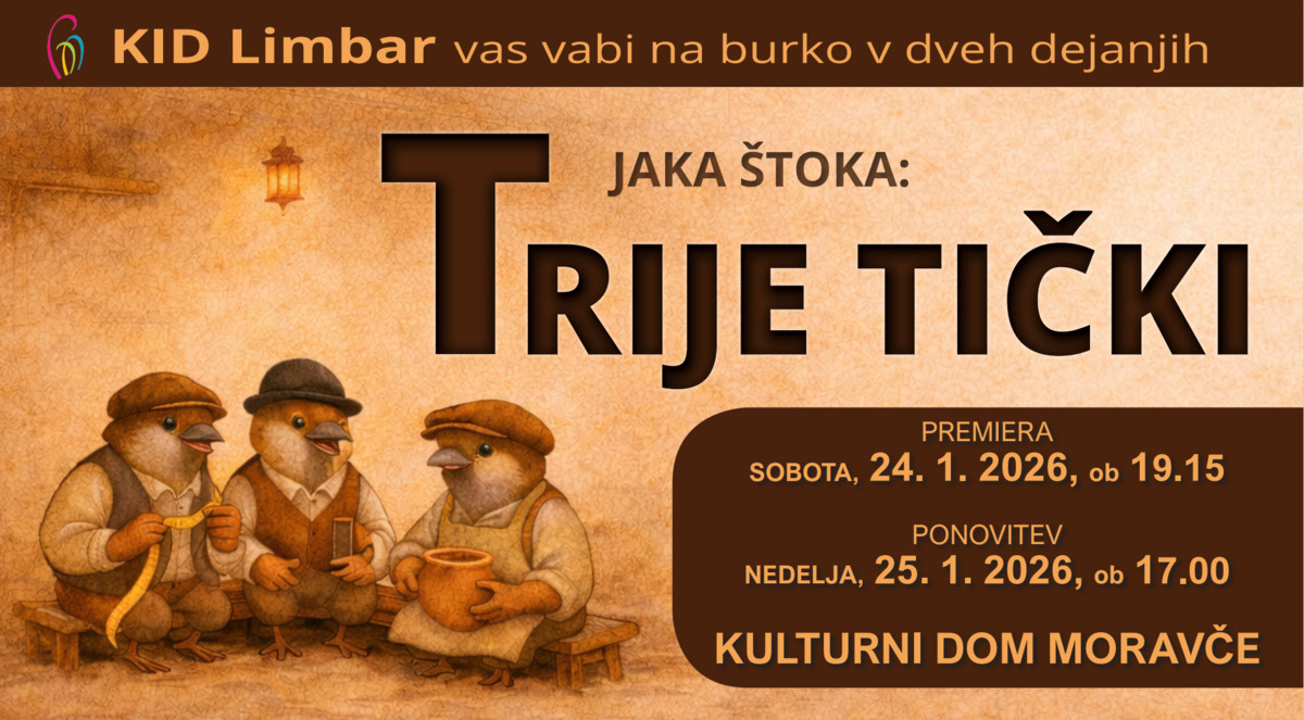 KID Limbar iz Moravč vas prisrčno vabi na premiero burke v dveh dejanjih Trije tički.