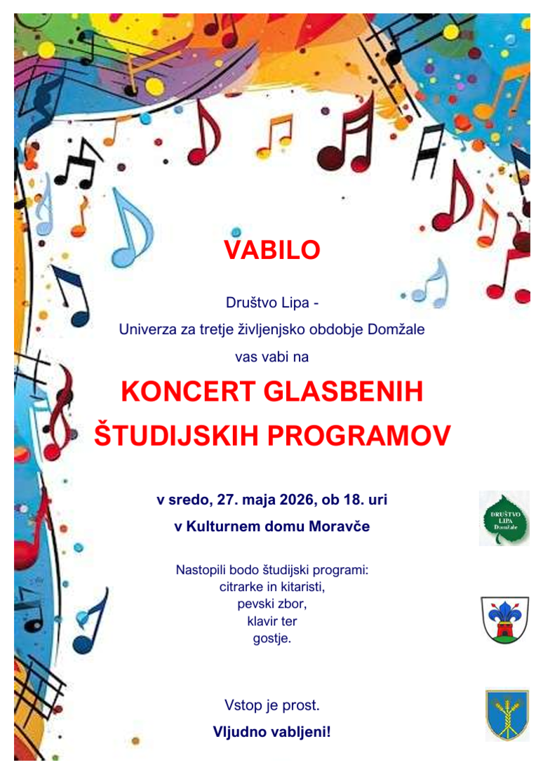 Društvo Lipa – Univerza za tretje življenjsko obdobje Domžale vabi.